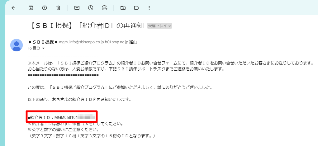 本登録が完了すると、紹介者IDと専用ページが届きます。