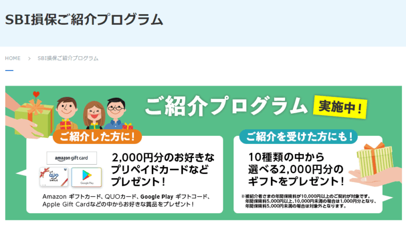 SBI損保の「ご紹介プログラム」キャンペーンについて。