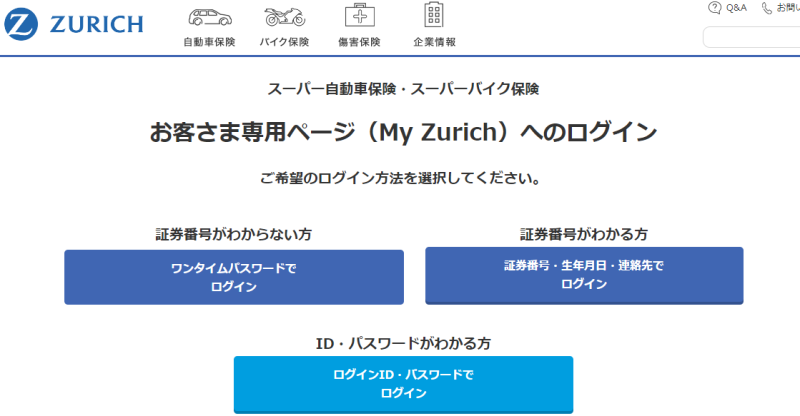 ID、パスワードを入力しログイン。My Zurich(マイページ)に入ると、紹介ページへのボタンが出てきますのでクリックし、進みます。