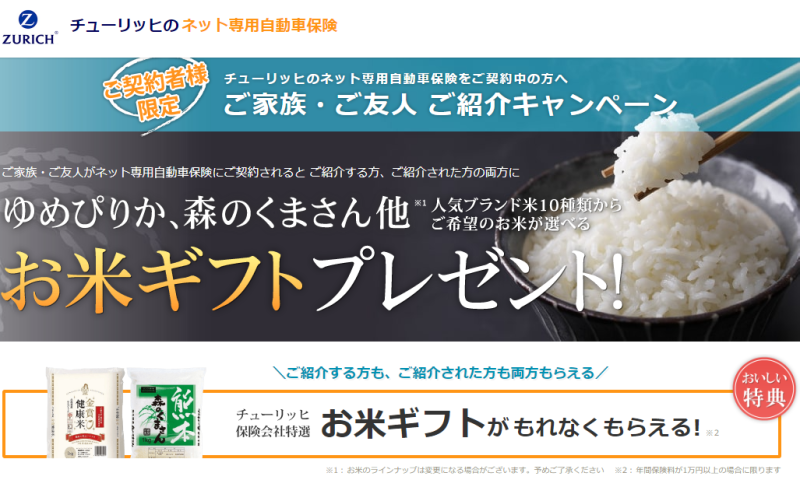 チューリッヒ「ご家族・ご友人紹介キャンペーン」は以下の通り。